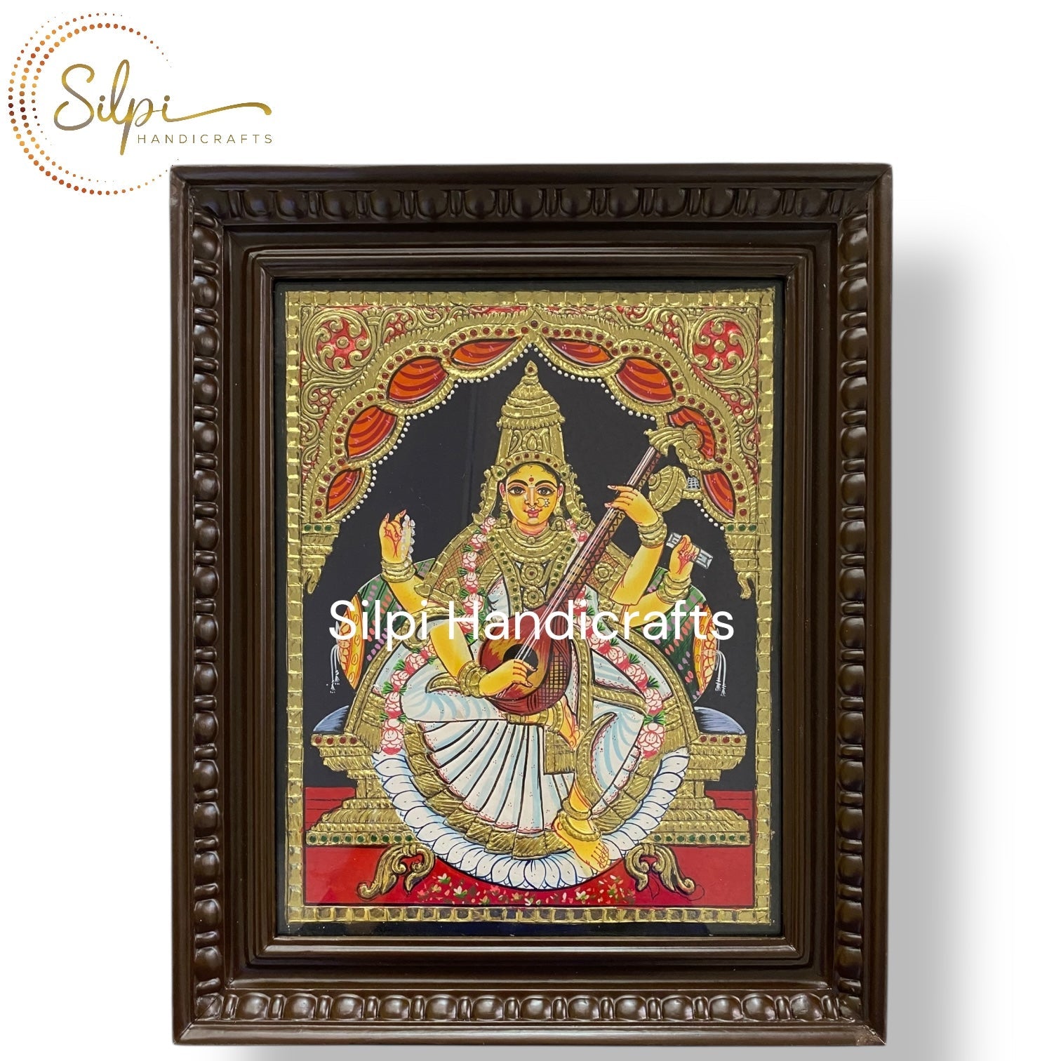 Saraswathi in White Tanjore Painting with Mani Frame